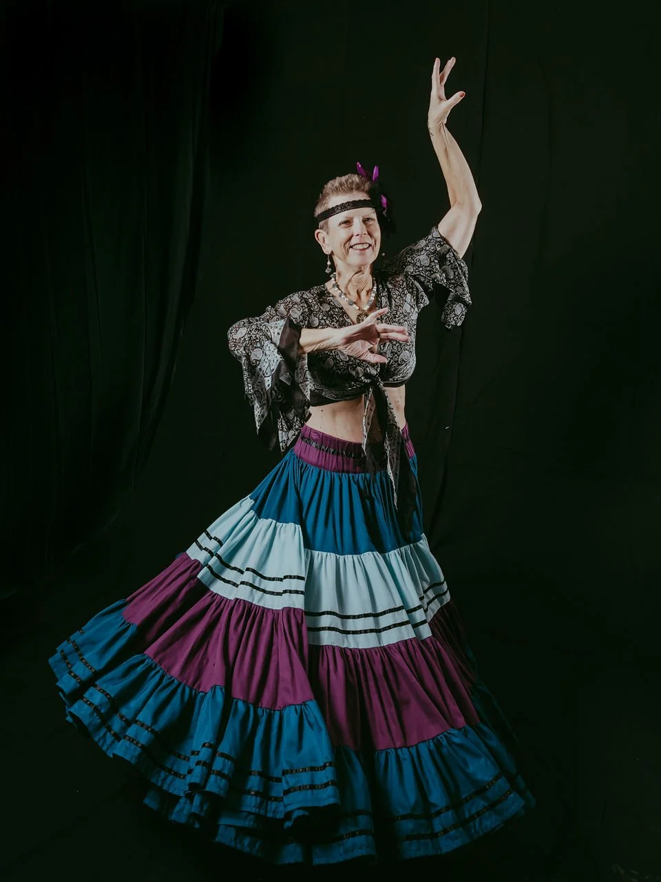 My dance journey started as a child. As long as I can remember, I’ve always loved to dance. Growing up in the 60’s in a very small town, there were no dance lessons available that I was aware of. My introduction to dance was via the television. Every Saturday morning I would watch American Bandstand followed by Soul Train.. I was so fascinated by this crazy thing called dancing. When I was old enough, I would drag my friends out dancing at the clubs on Fri or Sat night. They weren’t into dancing as much as me but would go with me anyway. Throughout the years I would go dancing as much as possible but that all came to an end when I got married in 1990. He didn’t like to dance and told me I could not go out without him. I had 2 more children to add to my 1 that I already had so there was no time to pursue my love of dance. After my divorce in 2010 and my last child completing school in 2014, I set out to find new things to do with my new freedom. That’s when I discovered Meetup which led me to find dance lessons. I dove deep rekindling my love for dancing. I began taking lessons for ballroom, swing, hustle, waltz and belly dance. I was attending dance classes 3 nights a week. After a few months of dance lessons under my belt, I can say I was better at all the ballroom dances but I knew right away that my passion was for belly dancing. It is definitely the hardest dance style I’ve learned but also so rewarding and fun! My only regret is not finding belly dancing earlier in life. I am nearing 62 with several physical hindrances but I plan on continuing to dance as long as my body holds up!
